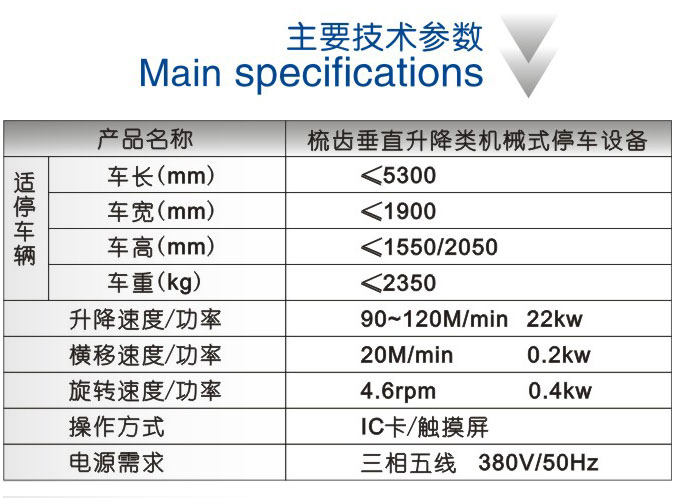 运行原理 PCS垂直升降类立体停车设备,俗称电梯式停车塔,采用与电梯类似的原理与结构,司机只需要将车停到出入口,汽车升降机将自动把车辆提升并搬运到最近的空车位,完成整个停车过程。本设备可以满足地上或地